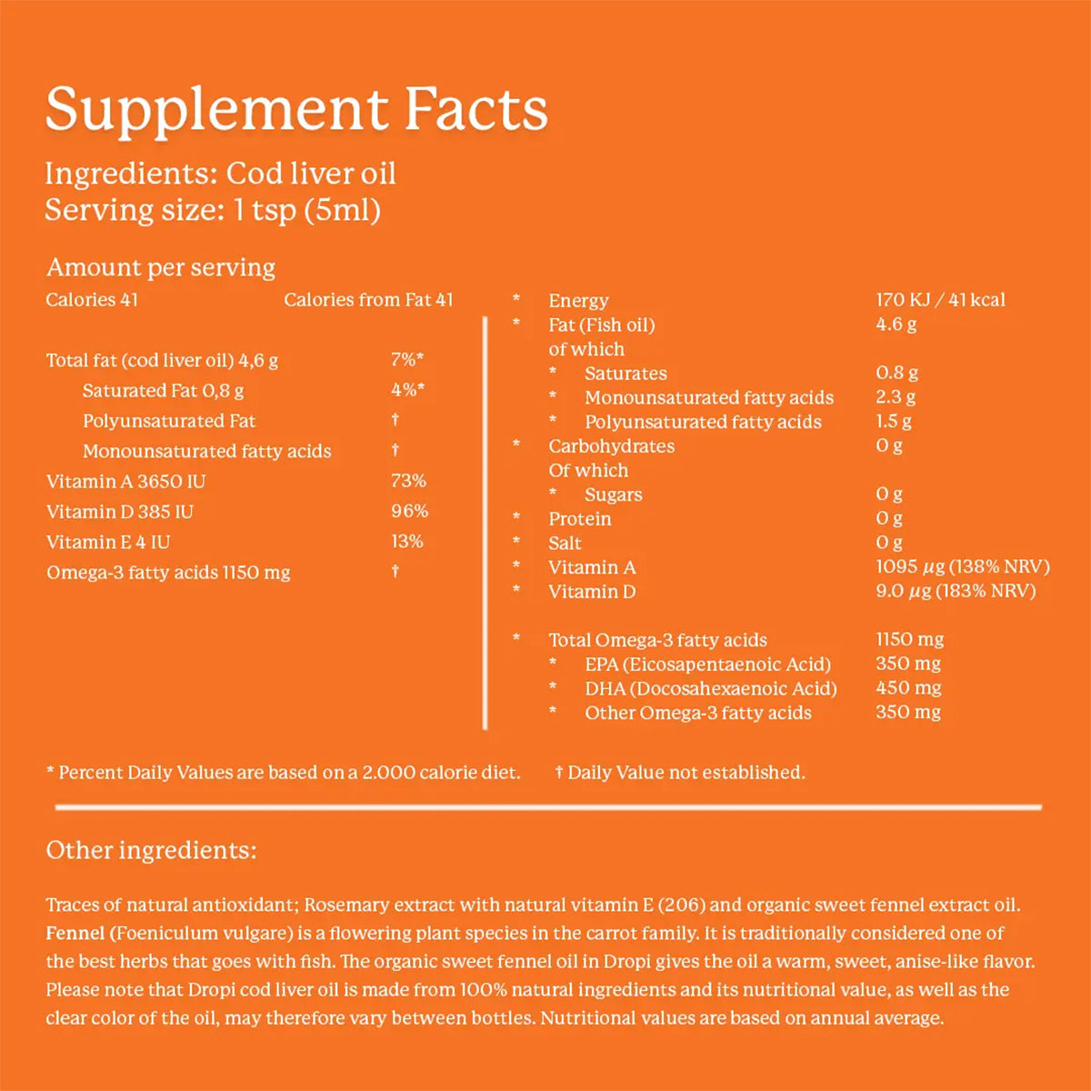 Dropi Cod Liver Oil Liquid offers a time-honored way to nourish your body with naturally occurring vitamins and essential fats—straight from the sea to your spoon.