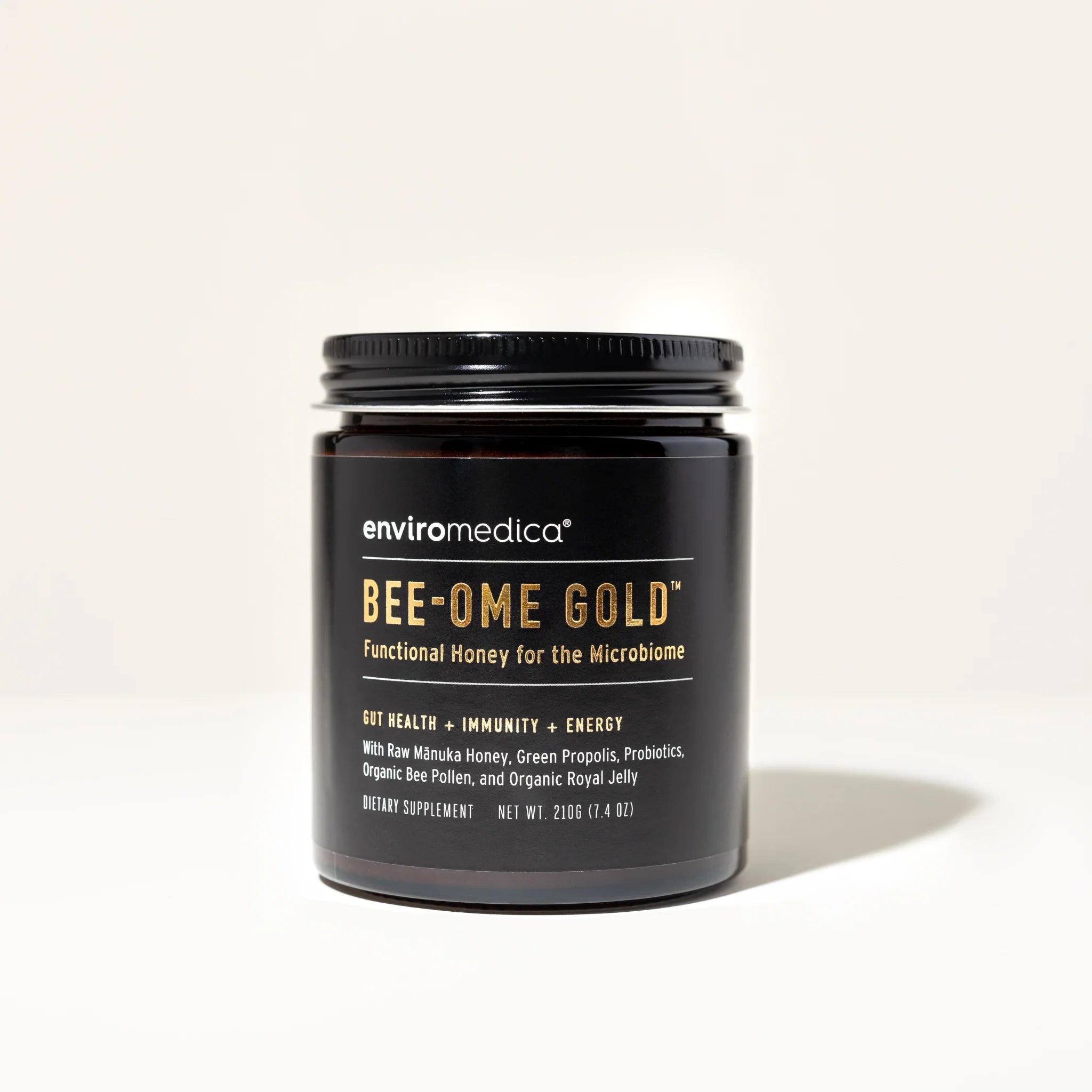 Bee-Ome Gold is a unique functional honey blend that combines rare bee superfoods, such as raw manuka honey, organic bee pollen, royal jelly, and Brazilian green propolis, with spore-based probiotics to support gut balance, immune resilience, and whole-body energy. Rather than a typical supplement formula, this is ancestral nutrition in a spoonful, harnessing the power of the hive for modern wellness.