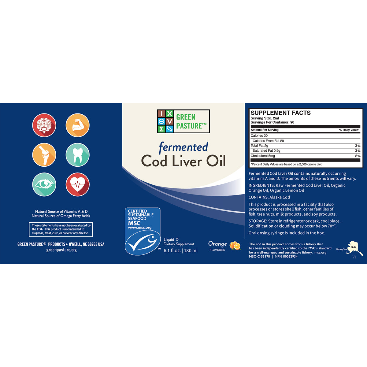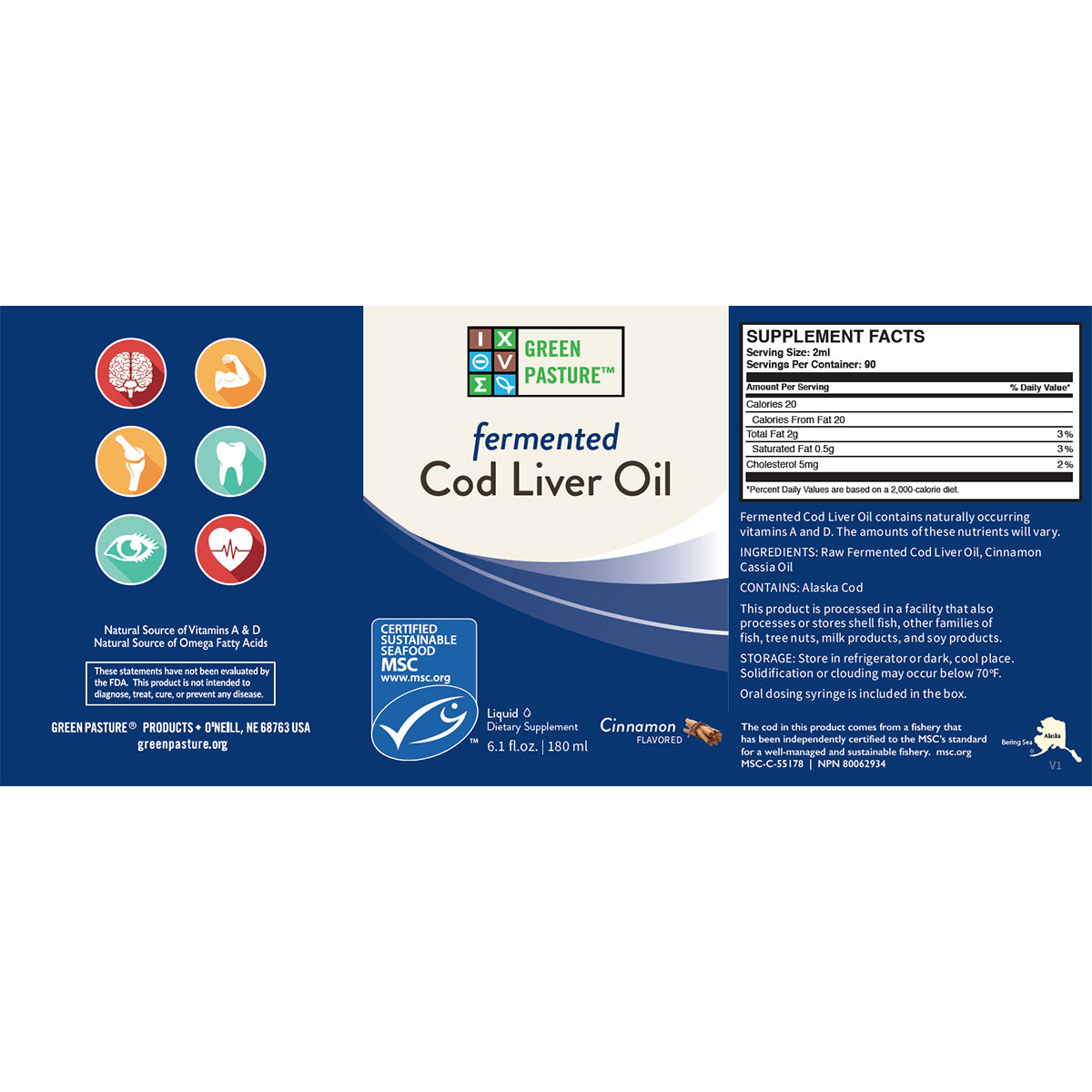 Green Pasture Fermented Cod Liver Oil is a traditionally crafted, whole-food supplement made from wild-caught Arctic cod. Using a gentle fermentation process, this oil retains its natural balance of fat-soluble vitamins A and D, along with omega-3 fatty acids like EPA and DHA. This time-honored method supports superior nutrient bioavailabilityโdelivering concentrated nourishment just as nature intended. It is recommended by the Weston A. Price Foundation, a leading health organization that champions the benefits of whole food nutrition, as one of the best cod liver oil supplements to support a healthy diet.