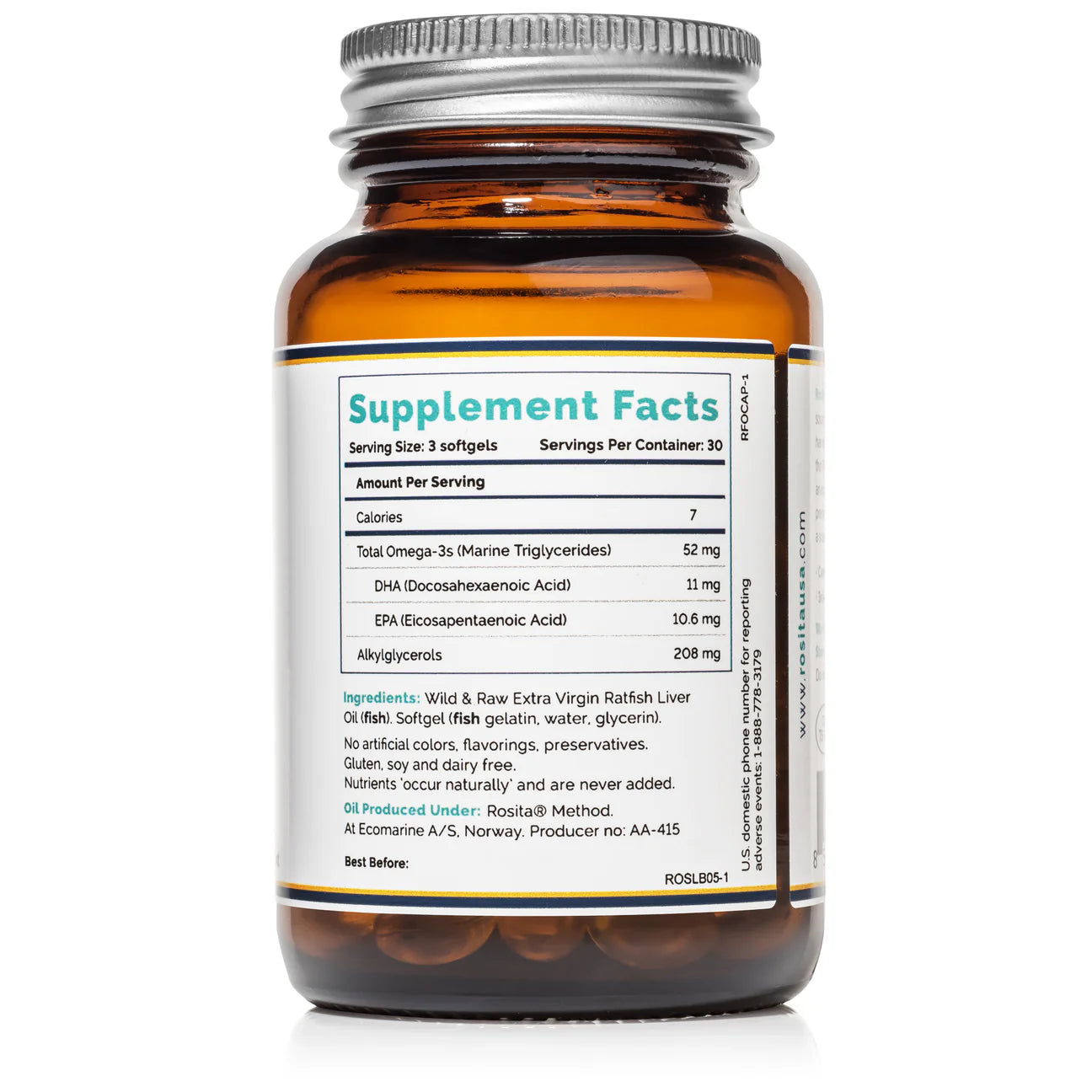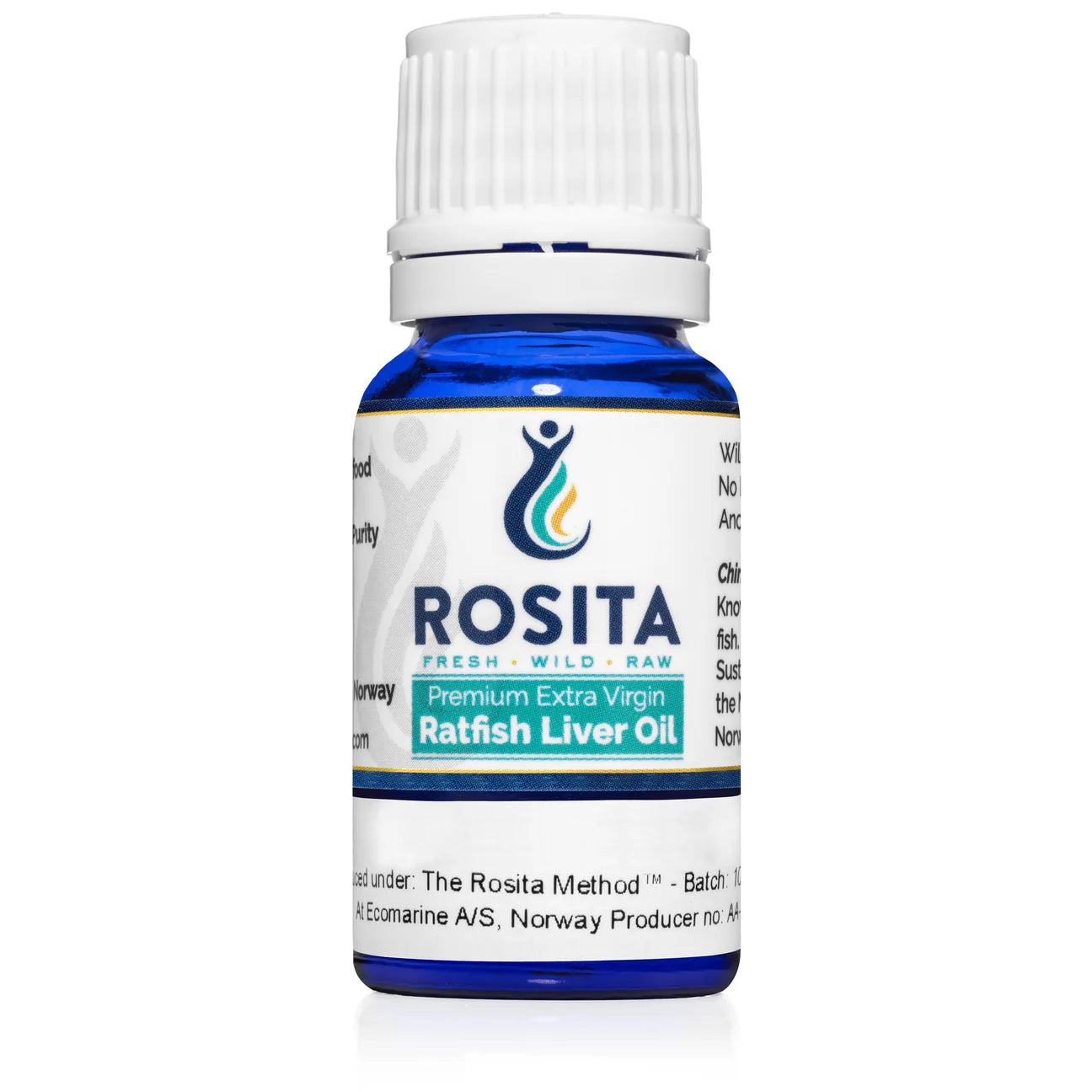 Rosita Ratfish Liver Oil is a rare, nutrient-dense traditional oil handcrafted in small batches from wild-caught Norwegian ratfish (a type of shark). Revered by Scandinavian Vikings for centuries, this golden-hued oil is extracted using a gentle, chemical-free method to preserve its full spectrum of naturally occurring nutrients—including alkylglycerols, omega fatty acids, and vitamins A & D.